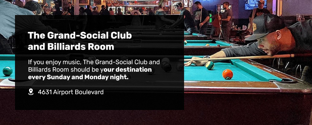 If you enjoy music, The Grand-Social Club and Billiards Room should be your destination every Sunday and Monday night. On each of those nights, The Grand features a live DJ who’s sure to play all your favorite hits. With 20 rotating beers on tap at any given moment, The Grand’s covered patio is a great place to quench your thirst and satisfy your hunger when you take a break from playing games.