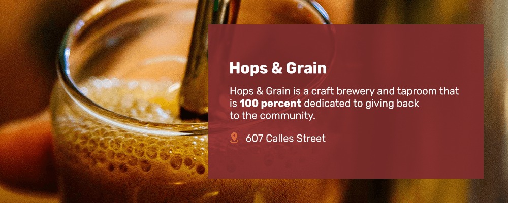 In addition to being committed to the community, Hops & Grain is dedicated to making sure its guests have a great time. Located at 607 Calles Street, Hops & Grain serves craft beer in its taproom seven days per week. You can grab some food from the Food Monger Fresh + Freestyle food truck Wednesday through Sunday, and you can enjoy time with your canine companion on the outdoor patio.